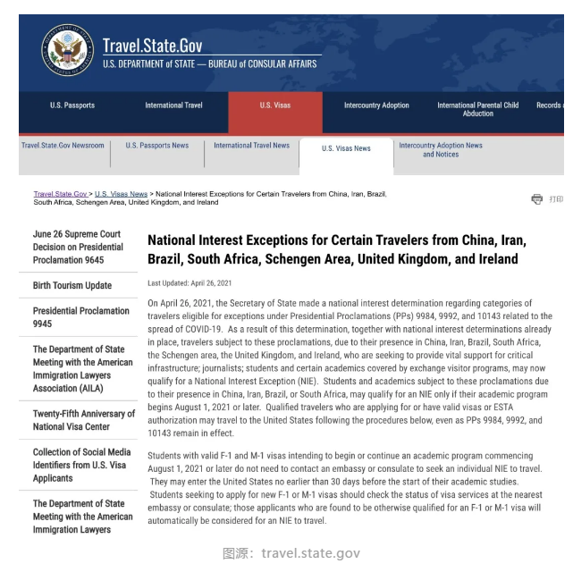 美国时间4月26日晚间,美国国务院发布一则重磅消息,解除对中国、伊朗、巴西、南非、英国、爱尔兰及申根地区留学生的赴美禁令!